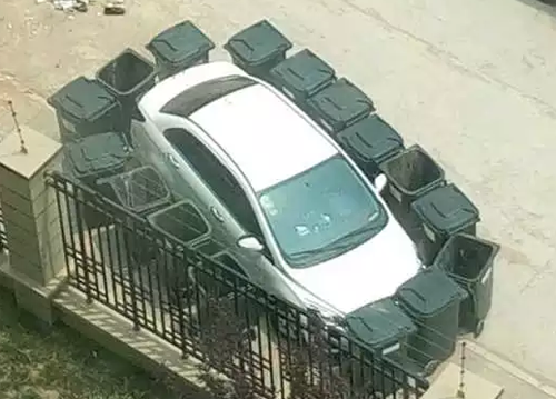 據(jù)介紹,停車處是放置小區(qū)垃圾桶的位置,私家車在此停放時垃圾桶較少,而等其他垃圾桶運來時只得放在路邊,小區(qū)保潔人員多次撥打車主電話無人接聽。當天中午,垃圾清運車倒完垃圾后,垃圾桶因無處可放擺在了私家車周圍。