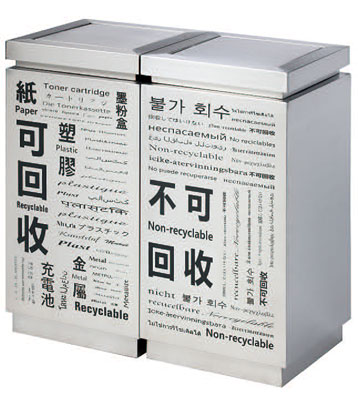 深圳新標準城中村街道社區不銹鋼五分類垃圾桶由有害垃圾、玻璃、金塑紙(為金屬、塑料、紙張的簡稱)、廚余垃圾、其他垃圾這5分類不銹鋼垃圾桶組合而成。其中金塑紙、其他垃圾日常產生量較大,所以分類收集容器也