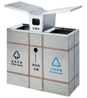 深圳新標準城中村街道社區(qū)不銹鋼五分類垃圾桶由有害垃圾、玻璃、金塑紙(為金屬、塑料、紙張的簡稱)、廚余垃圾、其他垃圾這5分類不銹鋼垃圾桶組合而成。其中金塑紙、其他垃圾日常產(chǎn)生量較大,所以分類收集容器也