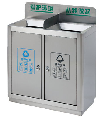 • 使用范圍:不銹鋼分類環保垃圾箱帶擋板表面光滑、亮麗,是電梯口、寫字樓、學校、物業、賓館、酒店、機場、汽車站等擺放的首選。
