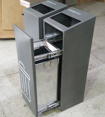 欣方圳商場不銹鋼室內滑軌四分類果皮箱批量生產圖