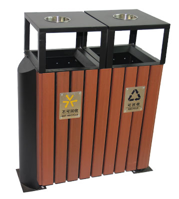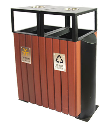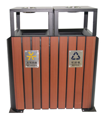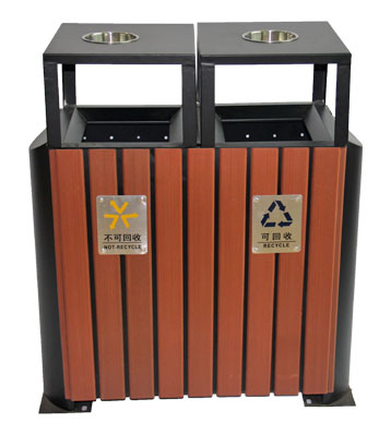 欣方圳環保鋼木分類垃圾桶桶身細節圖
